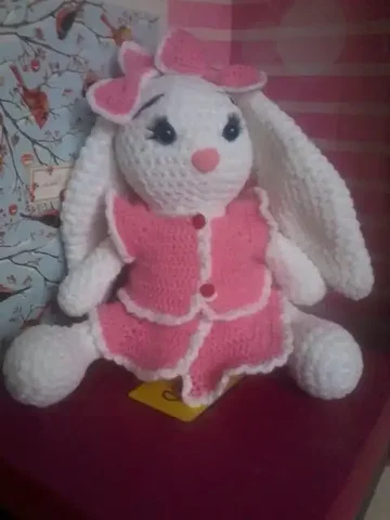 Вязанный зайчик из плюшевой пряжи 31 см