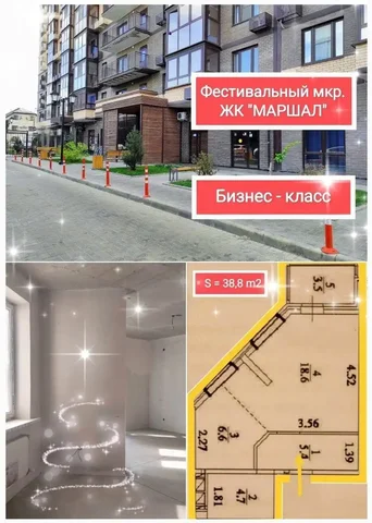 Продажа 1-комнатной квартиры 38.8 м² в Краснодаре, ЖК Маршал