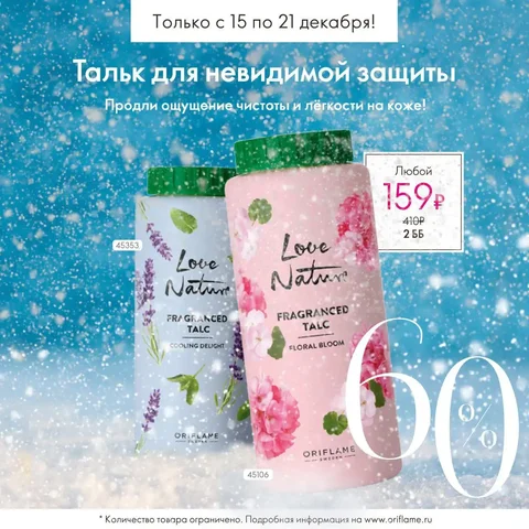Парфюмированные тальки для тела Love Nature