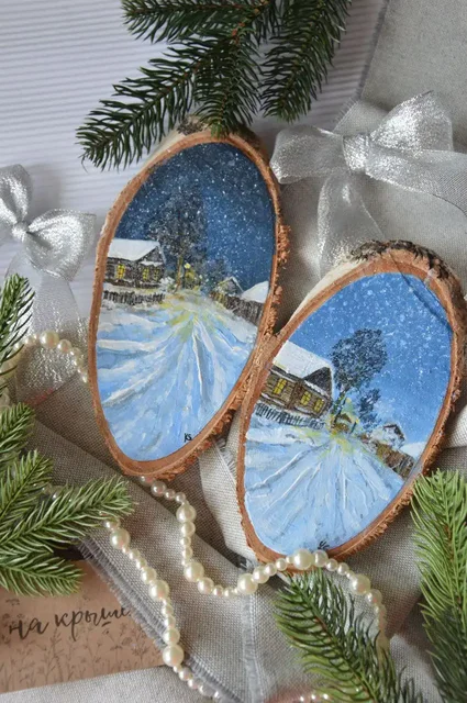 Картина на спиле и деревянная мини-досточка с росписью