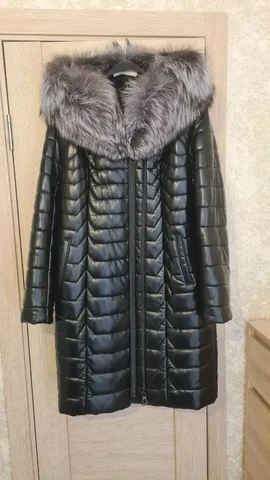 Тёплое зимнее пальто из экокожи с верблюжьей шерстью