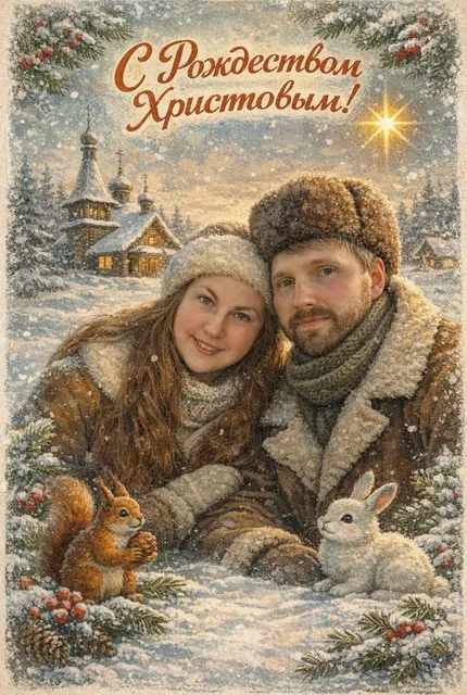 Поздравление с Новым годом и Рождеством открыткой в стиле СССР