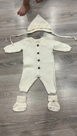 Детский вязаный костюм с шапочкой и пинетками