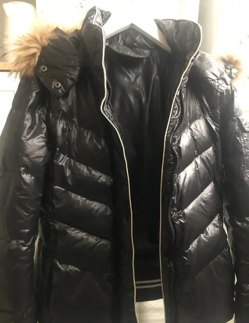 Черный пуховик 100% пух со съемным капюшоном