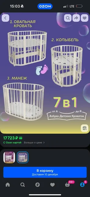 Кроватка 7 в 1 овал и круг собрана