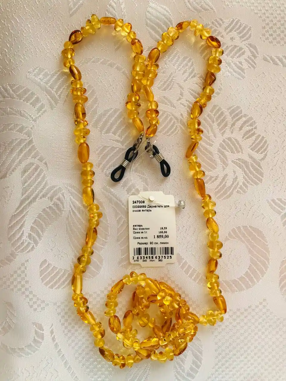 Держатель для очков из янтарных бусин