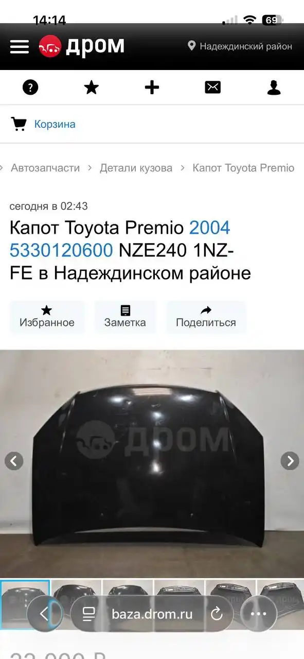Куплю капот Toyota Premio 240