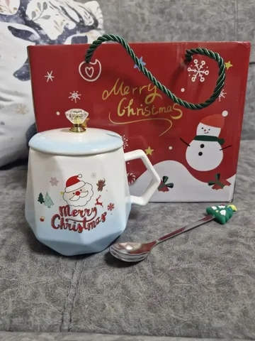 Новогодняя кружка с крышкой и ложкой в подарочной упаковке