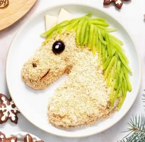 Украшение новогоднего салата в виде лошади