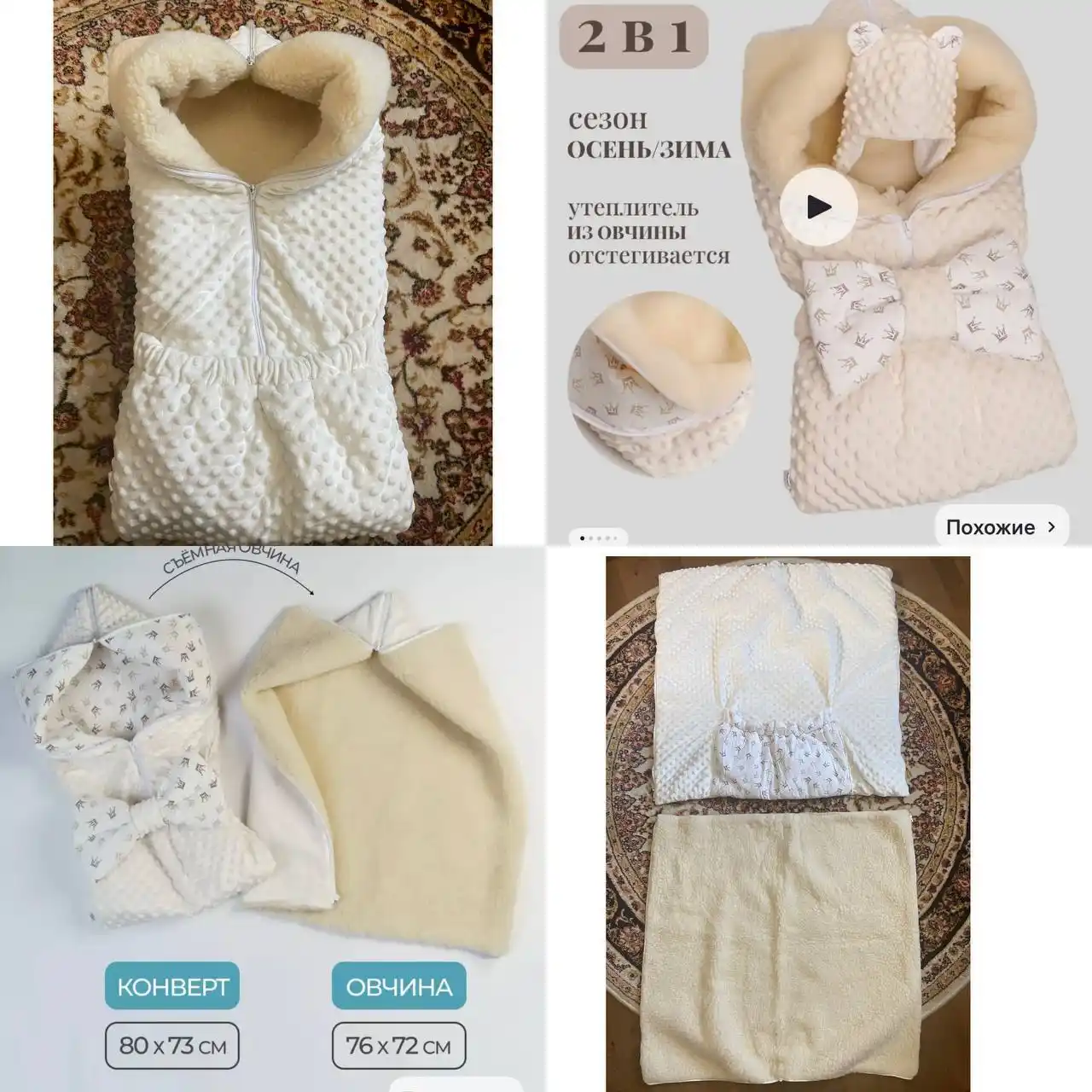 Конверт для новорожденного с овечьей вставкой