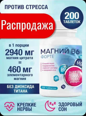 Магний В6 Форте Миофарм 200 таблеток