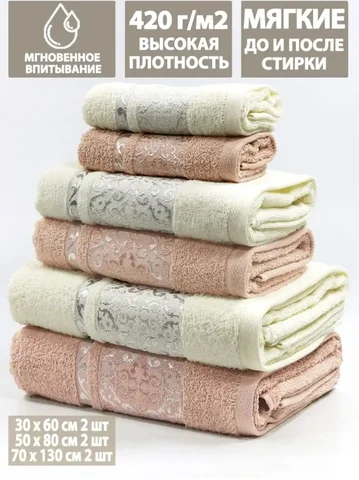 Набор банных махровых полотенец 6 шт разных размеров